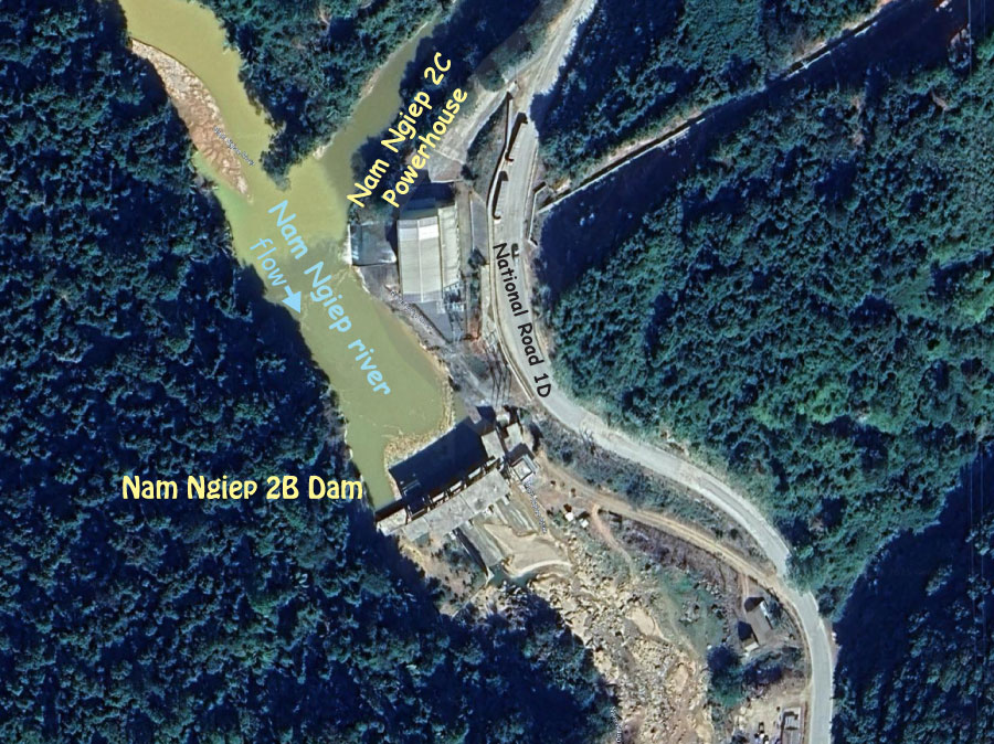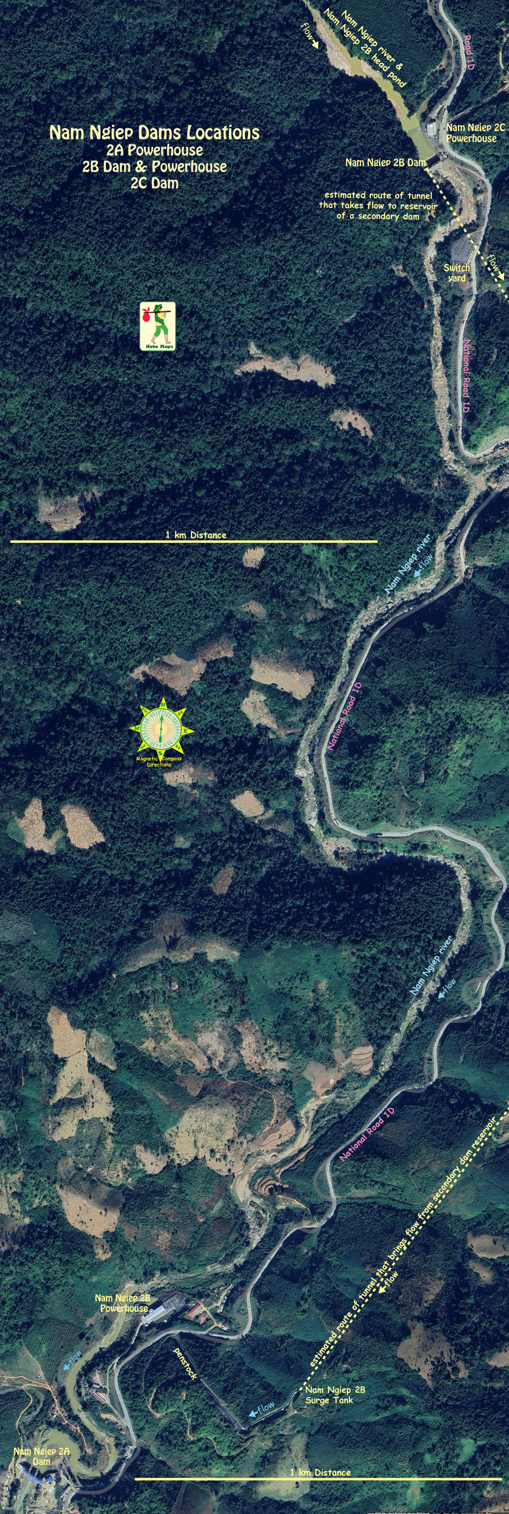 Satellite image map below for Nam Ngiep 2 2A, 2B & 2C hydropower projects: