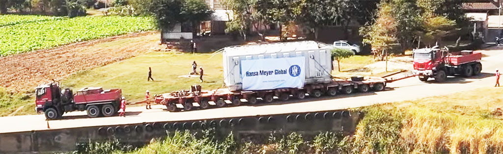 Massive size and 236 tons weight of 500 kV transformer for Nam Theun 1 required special transport of 1,100 km from Thailand to Laos across the Mekong as seen in images below: