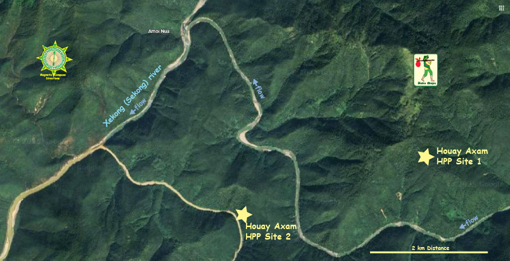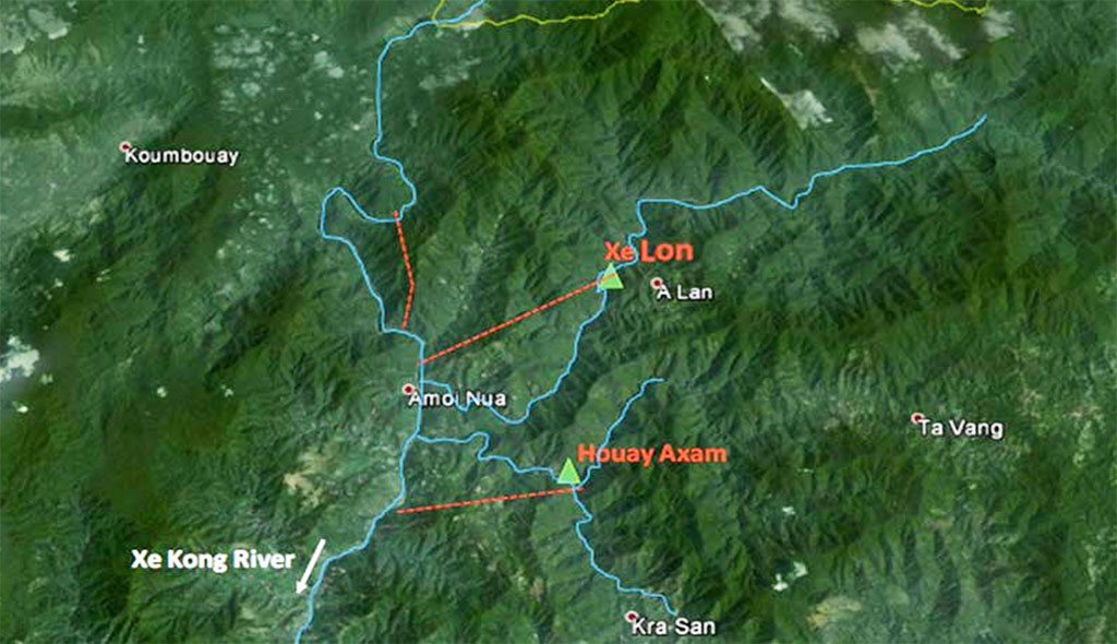 Houay Axam & XeLon HPP sites both on satellite image below.