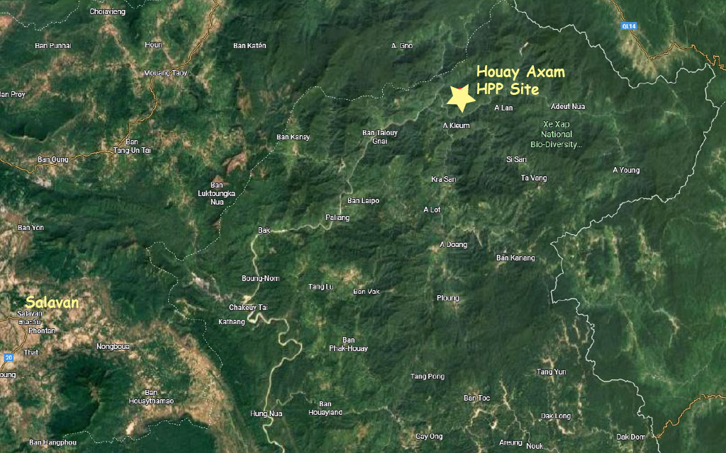 Houay Axam HPP proposed location is seen on image below contained in the Report along with XeLon HPP.