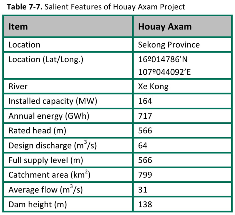 Houay Axam HPP was one of these alternative projects and is summarized on this web page. Since this project was hypothetical and only studied, it never had a developer or specific promoter but we feel a need for this project to be documented and on the web for future searches.