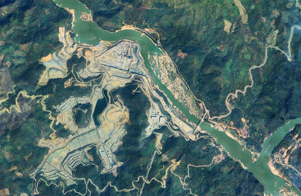 Luang Prabang Dam construction site satellite image below in 2022: