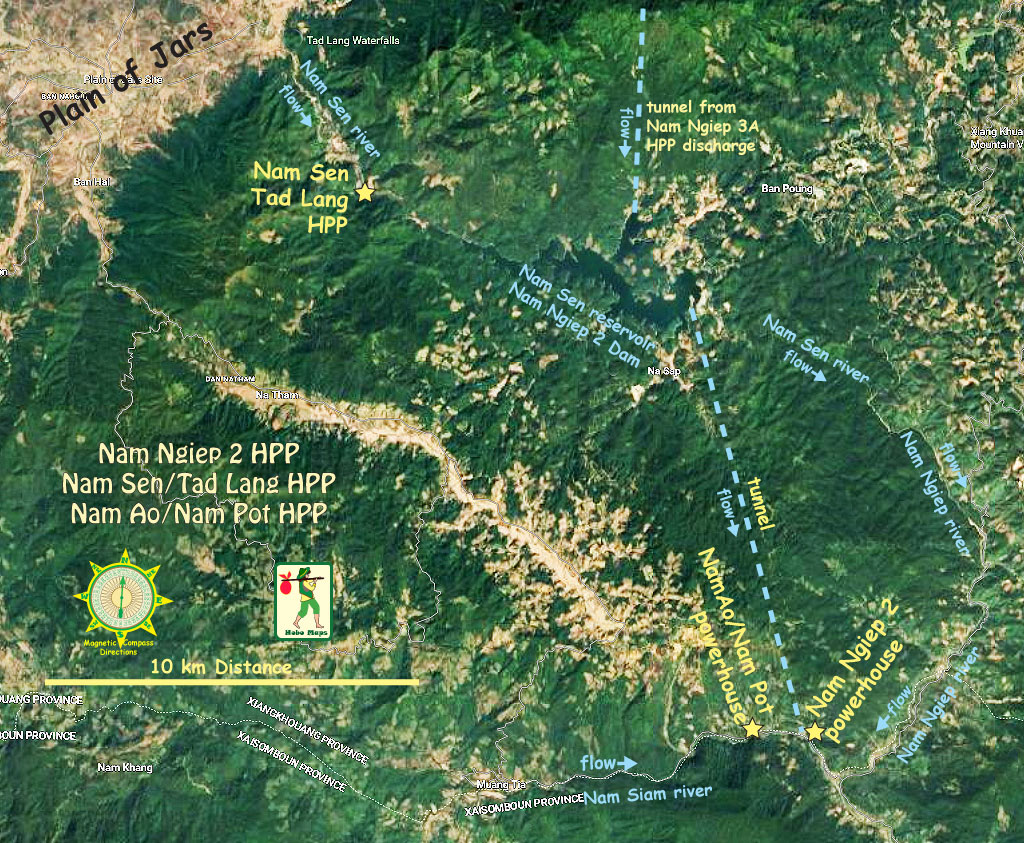Nam Ao-Nam Pot & Nam Ngiep 2 area maps below shows both powerhouses only 2.5 km distance apart on the Nam Siam river: