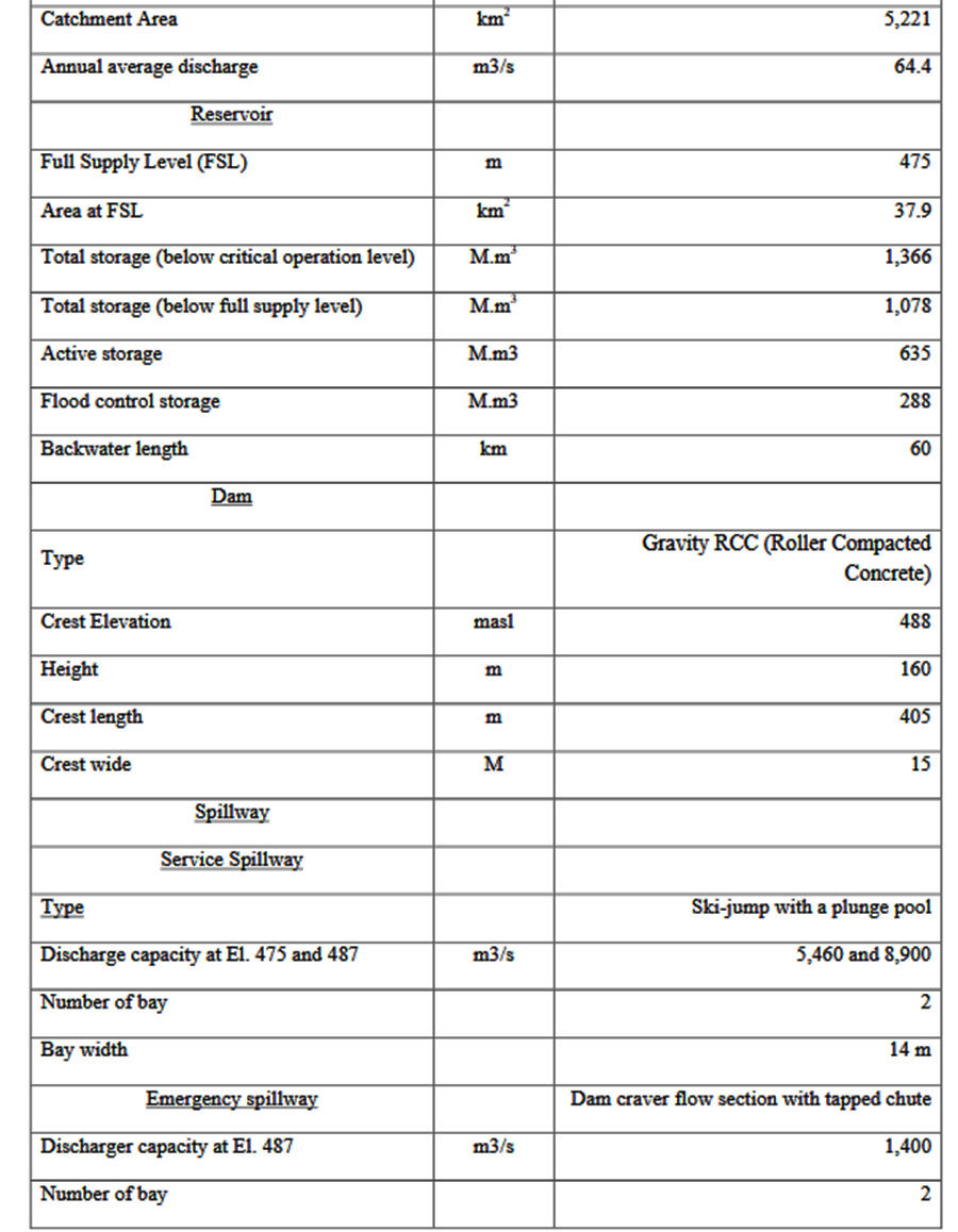 Nam Khan 2 dam planned design stats in chart below may not match actual after construction: