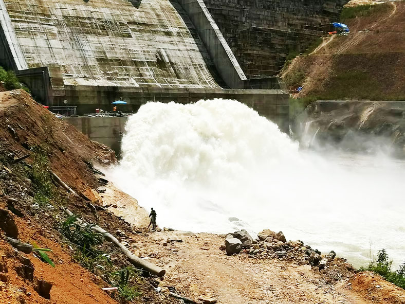 Nam Kong 2 concrete gravity dam is 50 meters high, 210 meters long and 8 meters wide. The reservoir surface covers an area of 4.2 square km.