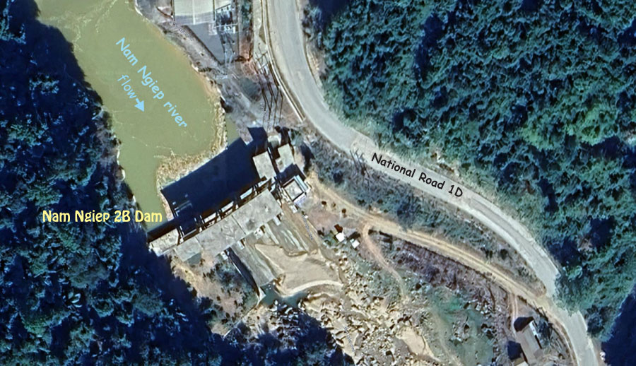 September 29, 2025 during typhoon Buoalai we have reports of a "Dam Failure" at Nam Ngiep 2B with comment of "big loss" but few details. See Facebook link 1 & Facebook link 2 . On one video we can see the dam structure with all 4 release gates closed and water rushing around one end of the structure which seems to be some sort of a washout. Apparently no injuries or casualties but some roads (Road 1D?) were closed temporarily.