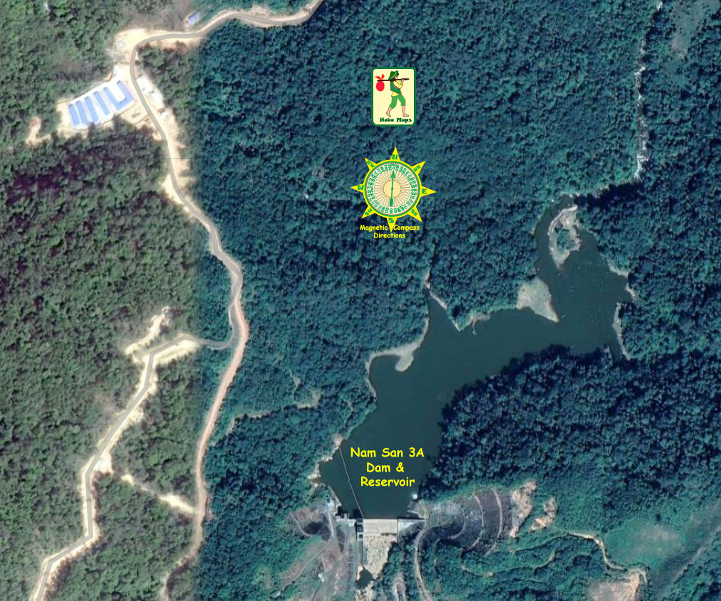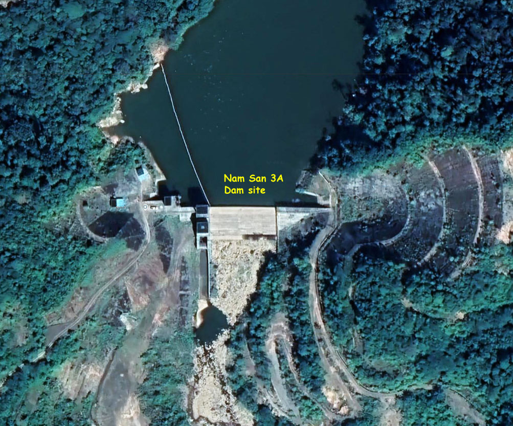 Nam San 3A powerhouse & 3B Dam sites shown in satellite images below: